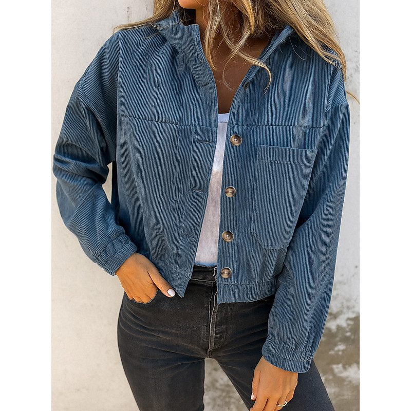 Unisex Casual Jacket Pocket Stripes Vintage Regular Fit Outerwear Long Sleeve Spring Blue S