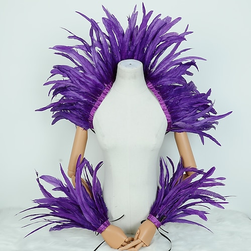 Carnival 2026 Accessori Samba del Carnevale di Rio Set di Costumi con Piume Rosse e Gialle da Carnevale Mantello per Spalle e Bracciali per Mardi Gras Costume per Festa di Danza Brasiliano