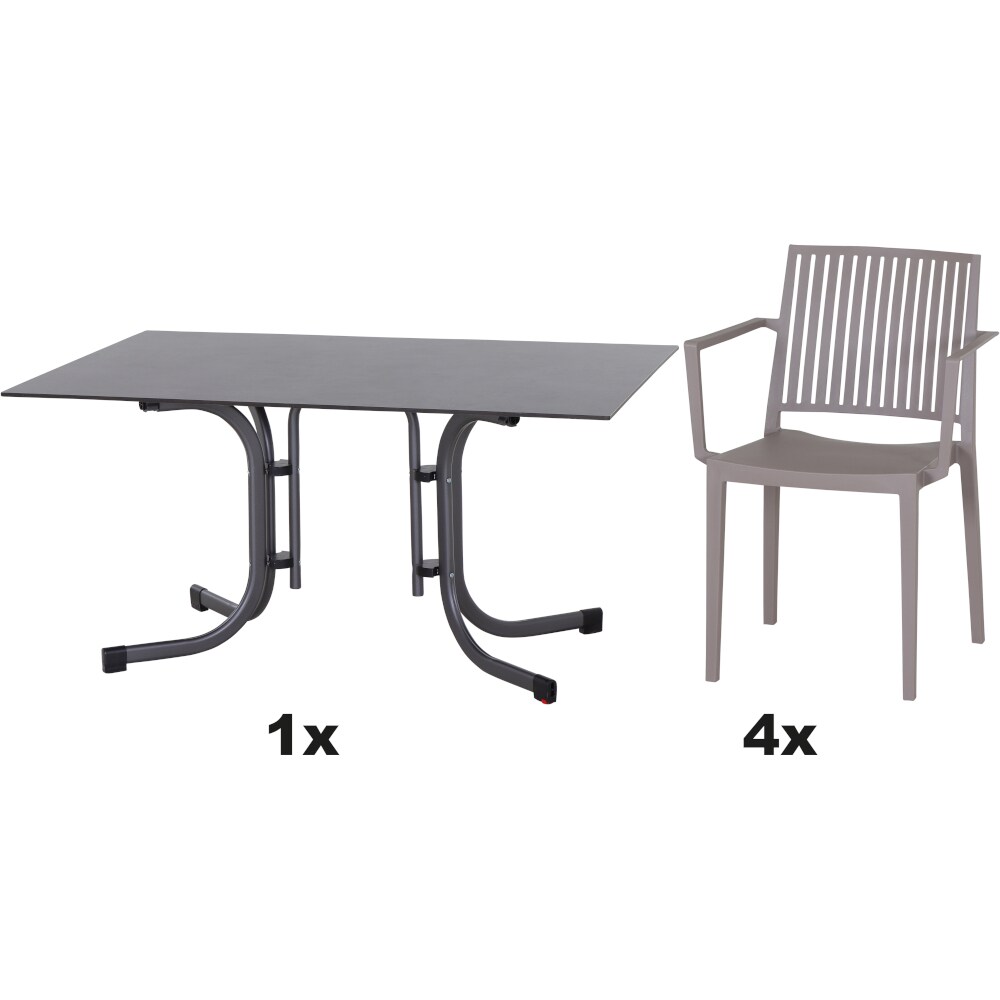 SIENA GARDEN Urban Lights Set 5teilig Lane Stuhl gastrotauglich grau mit Tisch Sola 140x90