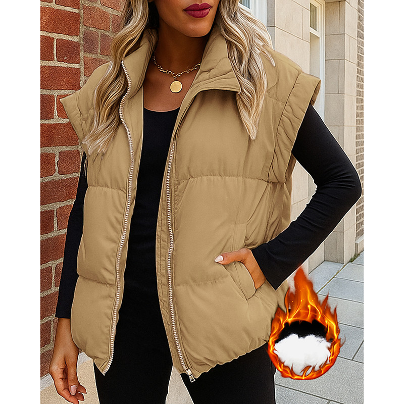 Women's Winter Coat Fleece Vest Winter Vest Lounge Top with Pockets Short Sleeve Top Athleisure Solid Colored Windproof Warm Hiking Travel Vacation Sportswear Activewear White Pink Fuchsia