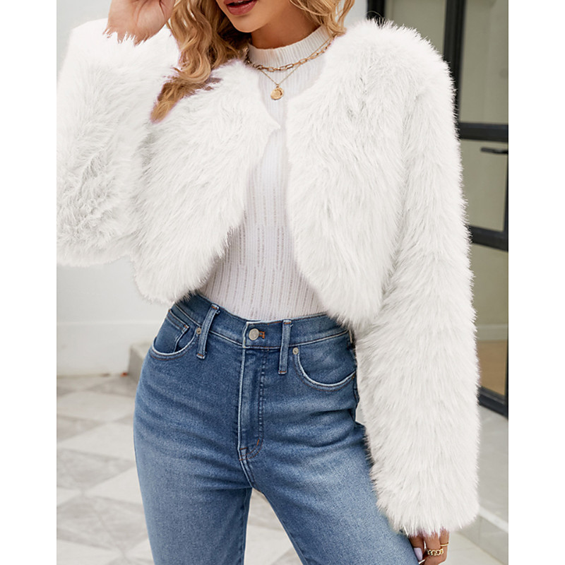 Women's Winter Coat Faux Fur Coat Warm Comfortable Cropped Furs Leathers Casual Plain Vacation Street Casual Daily Wear Short Crewneck Regular Fit Long Sleeve Outerwear Black White Brown Fall Winter