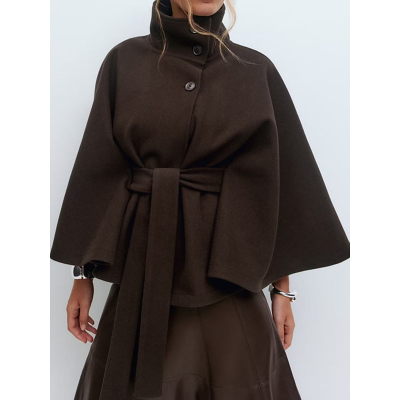 Women's Trench Coat Comfortable Breathable Lace up Buttons Elegant Casual Plain Vacation Street Casual Daily Wear Single Breasted Short Stand Collar Loose Fit Long Sleeve Outerwear Black White Navy