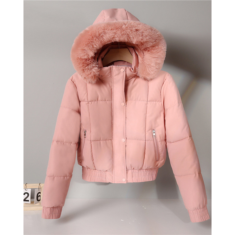 Women's Winter Coat Puffer Jacket Faux Fur Coat Warm Comfortable Zipper Pocket Buttons Casual Plain Vacation Street Daily Wear Going out Short Hooded Loose Fit Long Sleeve Outerwear Black Pink Khaki