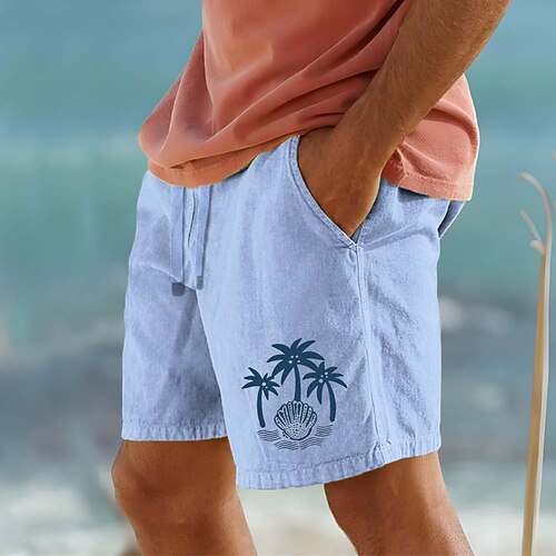 pantaloncini da uomo in cotone e lino stampati con albero di cocco pantaloncini hawaiani estivi pantaloncini da spiaggia coulisse elastico in vita traspirante morbido corto casual quotidiano vacanza
