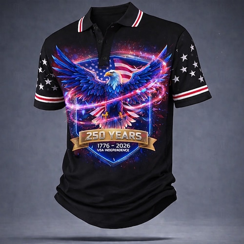 4. Juli 2026 250. Herren Amerikanische US-Flagge Poloshirts Kurzarm Polo-Shirts Hemden mit Kragen Lässig Outdoor Streetwear Athleisure Knöpfe Atmungsaktives Gewebe Sommer Frühling Blau Rote Schwarz