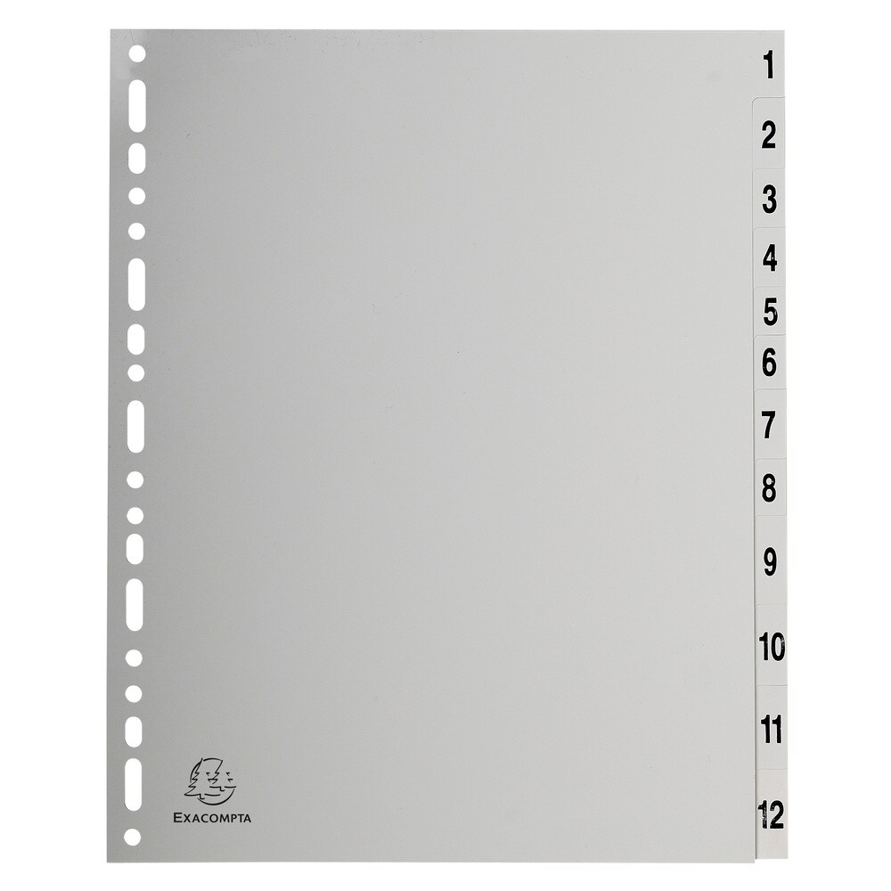 Exacompta Register mit Beschriftungsfeld aus PP 130µ mit 12 Positionen Taben 1-12, DIN A4 Überbreite