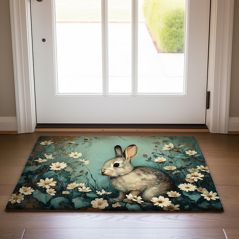 Ink Blue Rabbit Doormat Floor Mats Washable Rugs Kitchen Mat Non-Slip Oil Proof Rug Indoor Outdoor Mat Bedroom Decor Bathroom Mat Entrance Rug