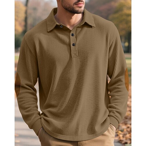 Per uomo Camicia di Velluto a Coste Polo Streetwear Casuale Bavero Manica Lunga Essenziale Moderno Blocco di colori Bottoni Primavera Autunno Vestibilità regolare Nero Blu marino Grigio chiaro