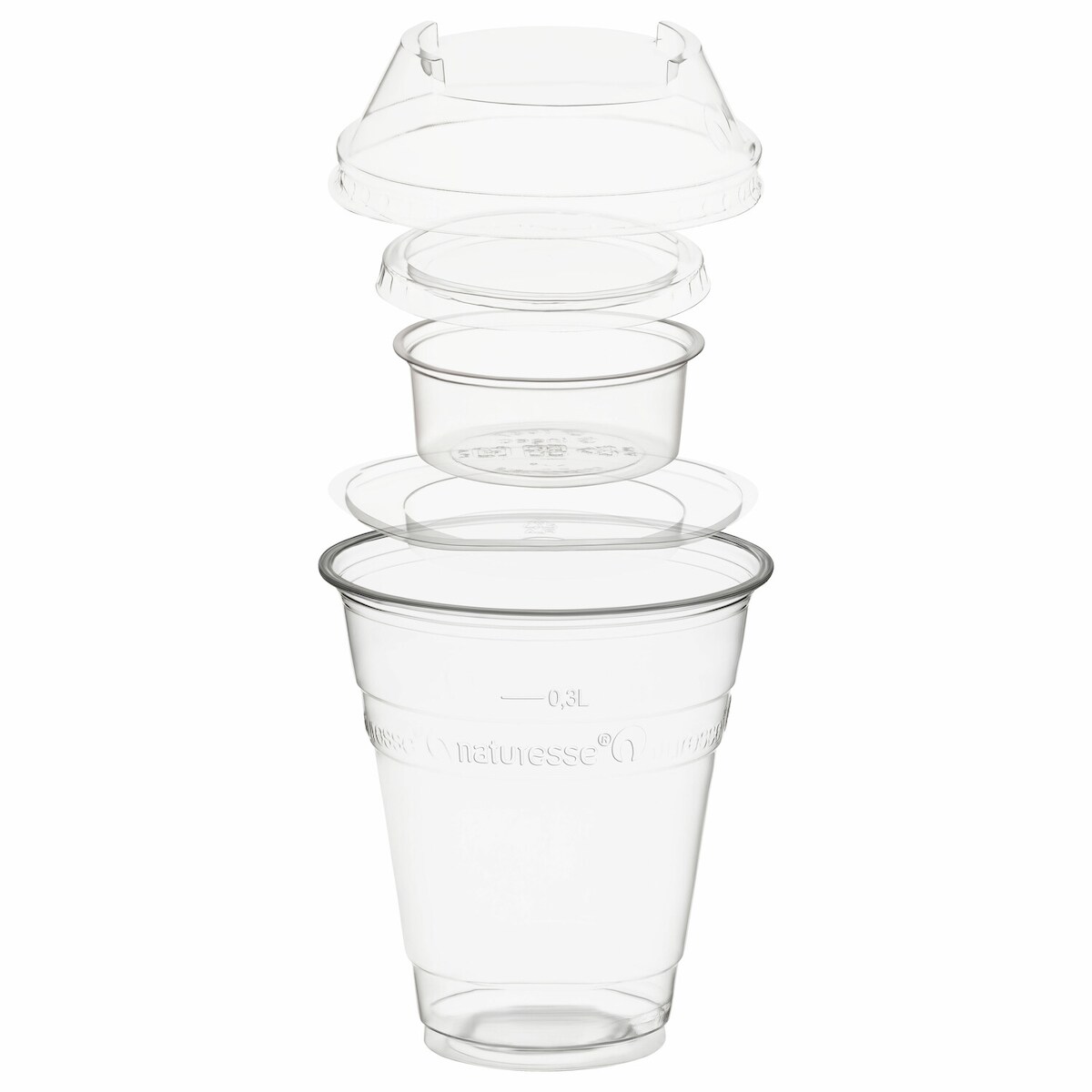 VEPATIM 100x BIO Trinkbecher 300ml+Domdeckel+Einsatzbecher stapelbar aus PLA
