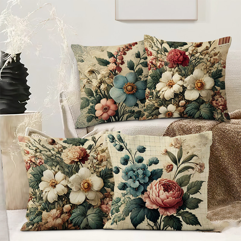 Floral Decorative Toss Pillows Cover 4PC Soft Square Couch Cushion Case Pillowcase for Bedroom Livingroom Sofa Chair