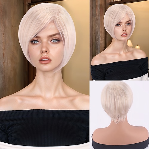 Synthetische Perücken Glatt Natürlich glatt Asymmetrisch Gerader Pony Maschinell hergestellt Perücke 10 Zoll A1 Synthetische Haare Damen Kühl Klassisch Bequem Mehrfarbig