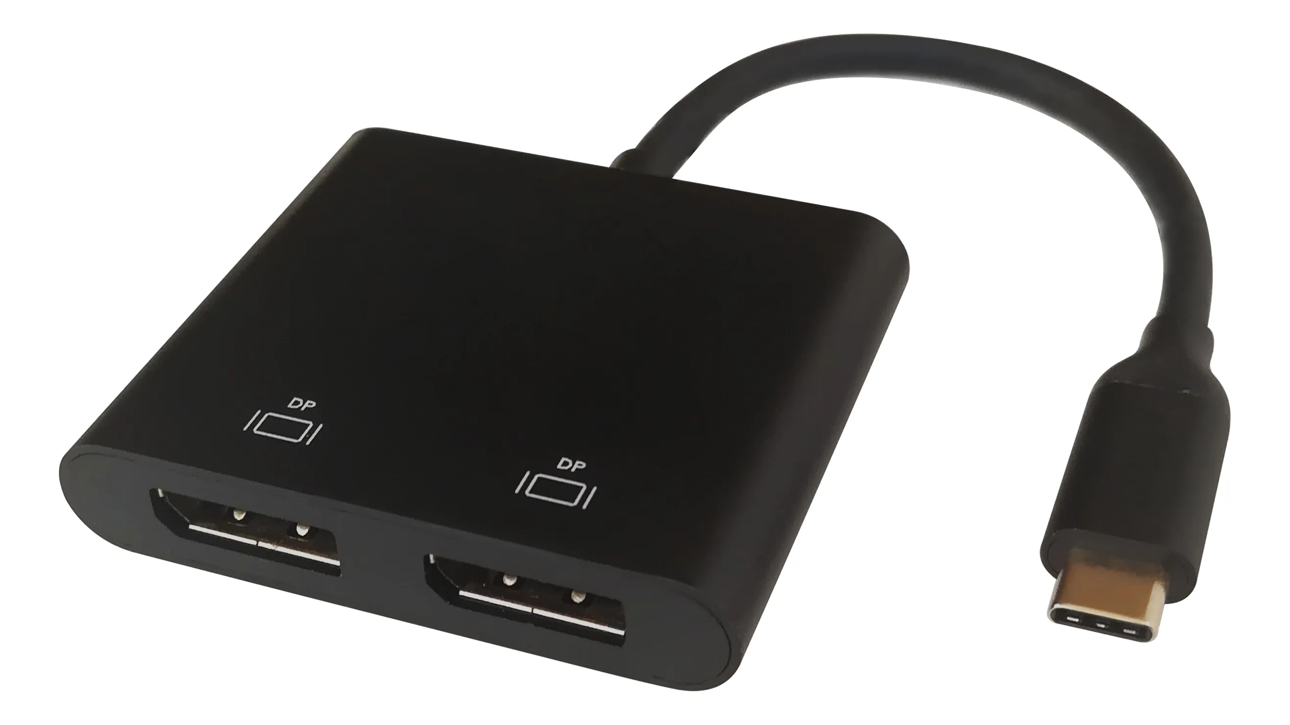 Deltaco USB-C, 2 x 4K/60 Hz, DP x 2 -MST-hubi, Musta, 0.1m
