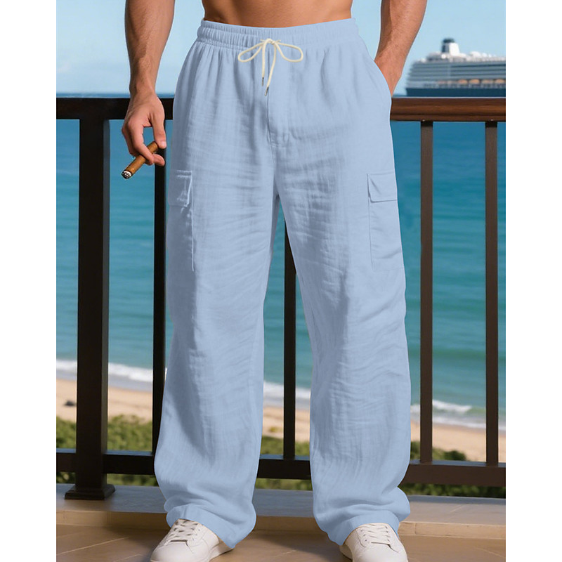 Men's Linen Pants Trousers Summer Pants Baggy Pants Beach Pants Drawstring Elastic Waist Straight Leg Plain Comfort Breathable Full Length Casual Daily Holiday Vacation Fashion White Navy Blue