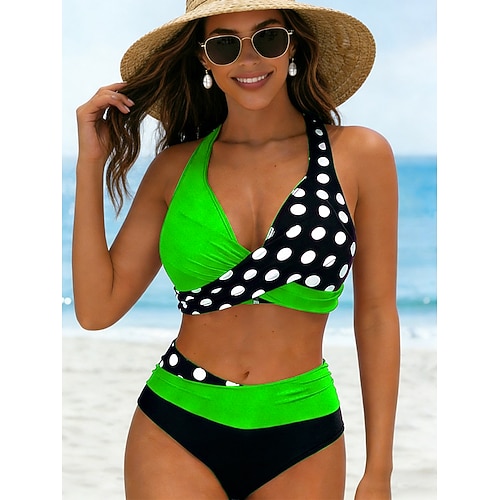 Per donna Costumi da bagno Bikini Vita alta Costume da bagno Vacanza Moda Grafico A Pois All'americana Senza Maniche Costumi da bagno