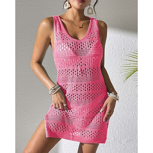 Per donna Costumi da bagno Copricostume Vestito da spiaggia Costume da bagno Taglio Vacanza Abbigliamento da Spiaggia Tinta unica Collo a U Senza Maniche Costumi da bagno
