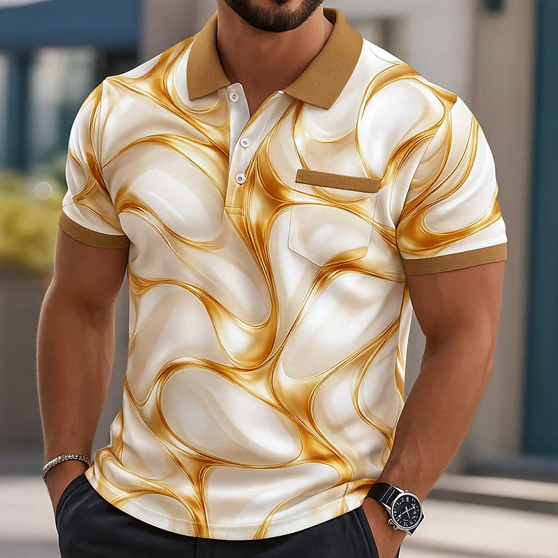 Men's Graphic Golf Shirt Short Sleeve Polo Shirts Collared Shirts Casual Vacation Wear Rave Wear Party Outfits Buttons 3D Print Summer Silver Yellow Red