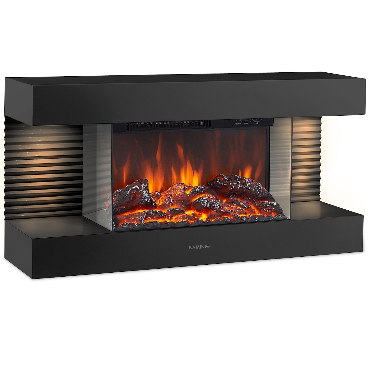 KAMINIO Elektrokamin LIZ - Elektrischer Wandkamin mit Heizung, 3D-Flammeneffekt, LED-Ambientelicht, Fernbedienung - Schwarz