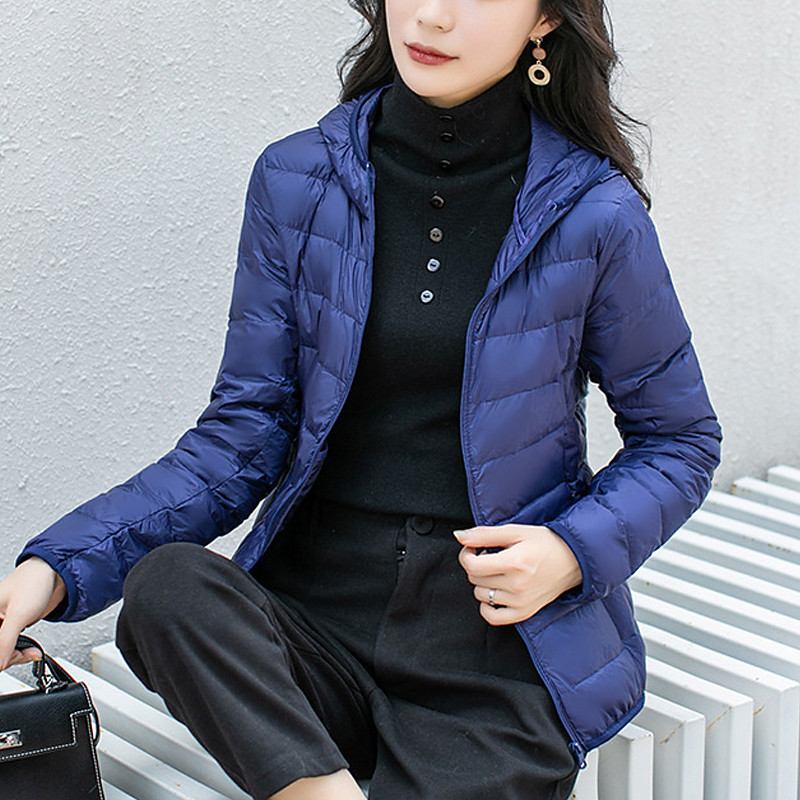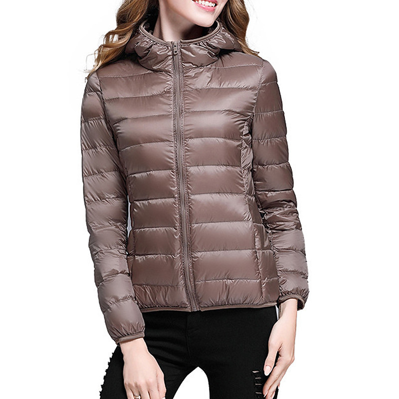Women's Down Jacket Puffer Jacket Warm Comfortable Zipper Pocket Fashion Modern Casual Plain Going out Weekend Zipper Regular Hooded Regular Fit Long Sleeve Outerwear Black White Light Green Winter