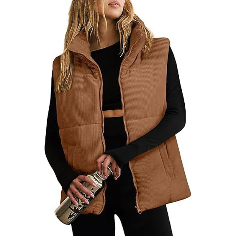 Women's Vest Warm Comfortable Zipper Pocket Fashion Plain Daily Wear Weekend Zipper Regular Stand Collar Regular Fit Sleeveless Outerwear Black Pink Brown Fall Winter