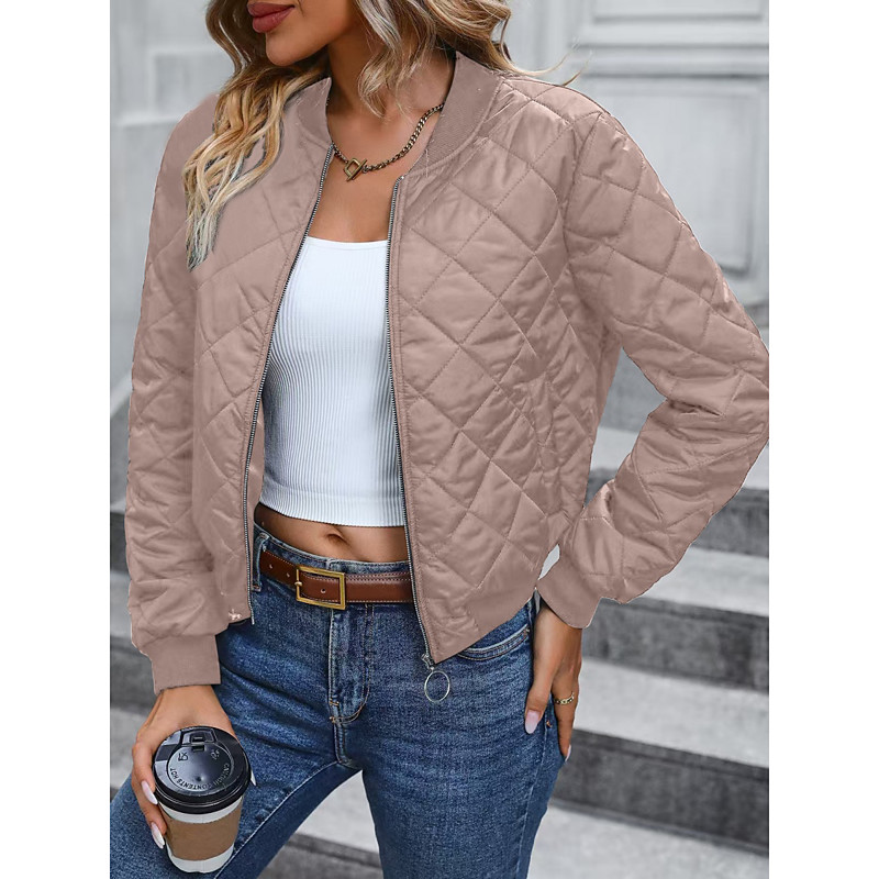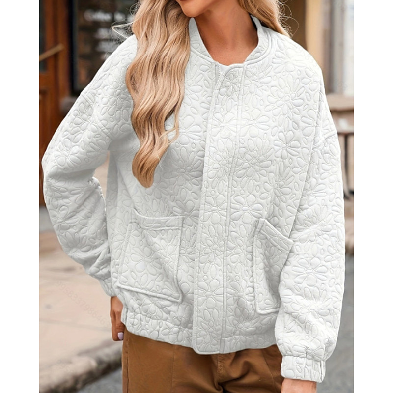 Women's Casual Jacket Textured Jackets Comfortable Zipper Fashion Modern Casual Plain Going out Weekend Zipper Regular Stand Collar Regular Fit Long Sleeve Outerwear Black White Pink Spring Fall