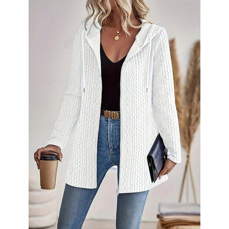 Women's Casual Jacket Hoodie Jacket Comfortable Breathable Zipper Casual Plain Vacation Street Casual Daily Wear Zipper Regular Hooded Regular Fit Long Sleeve Outerwear Black White Gray Spring Fall