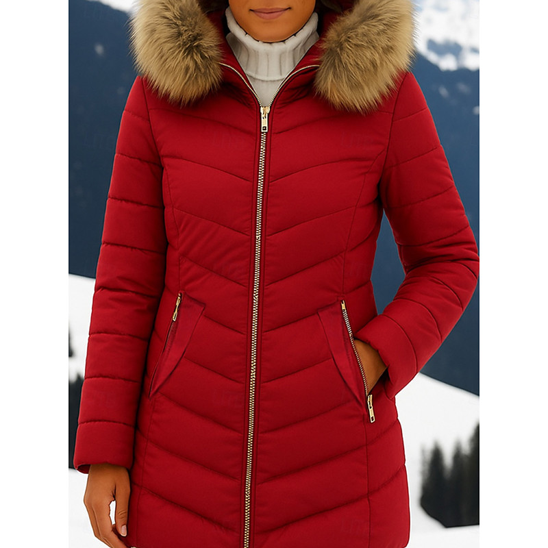 Women's Casual Jacket Warm Comfortable Fur Trim Zipper Pocket Fashion Outdoor Plain Going out Weekend Zipper Regular Hooded Regular Fit Long Sleeve Outerwear Black Pink Burgundy Fall Winter