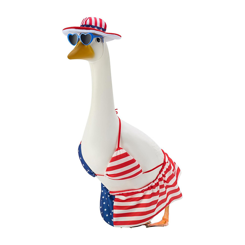 Patriotic Porch Goose Outfits Cement Goose Costume 4th of July Style Goose Outfit Including Bow Tie and Hat for Garden Decoration Party Patio Yard Christmas Gift