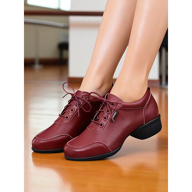 Burgunderrote Tanzschuhe aus Leder für Damen – bequeme Schnürschuhe mit Absatz für das Training in Standardtänzen, Lateinamerikanischen Tänzen und Jazz.