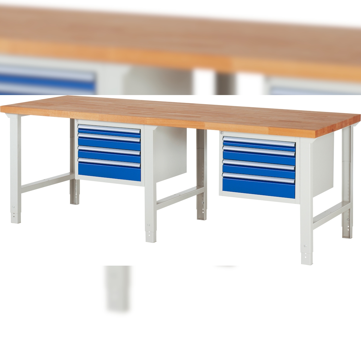 eurokraft pro Werkbank, Baukastensystem Serie 7000, 8 Schubladen, BxT 2500 x 900 mm