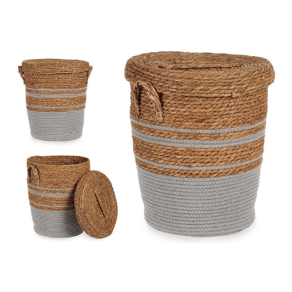 Vasketøjskurv med låg - brun/grå tang