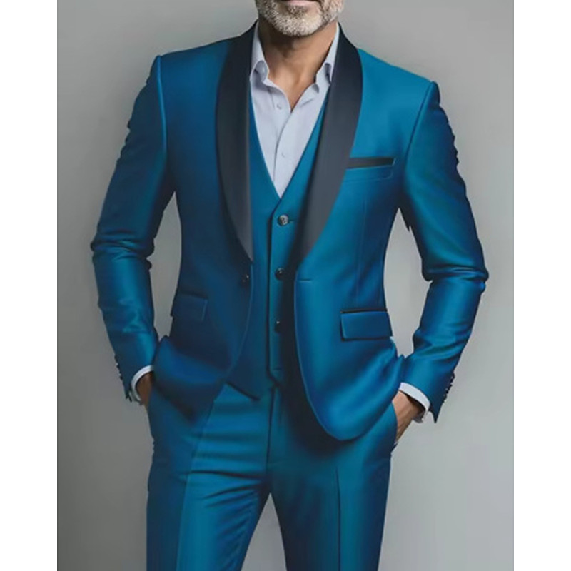 Men's BlazerVestDress Pants Blazer Suits Business Work Wedding Fashion Streetwear Fall Winter Nylon Solid Color 3-Piece Single Breasted Blazer Black Burgundy Navy Blue Royal Blue