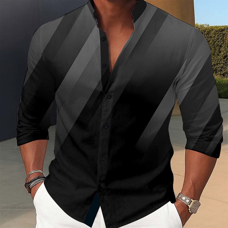 Men's Geometric Stripe Gradient Color Shirt Stand Collar Shirt Long Sleeve Fashion Casual Dailywear Holiday Spring Fall Mandarin Collar Band Collar 3D Print Button Up Shirts Blue Burgundy Green Gray