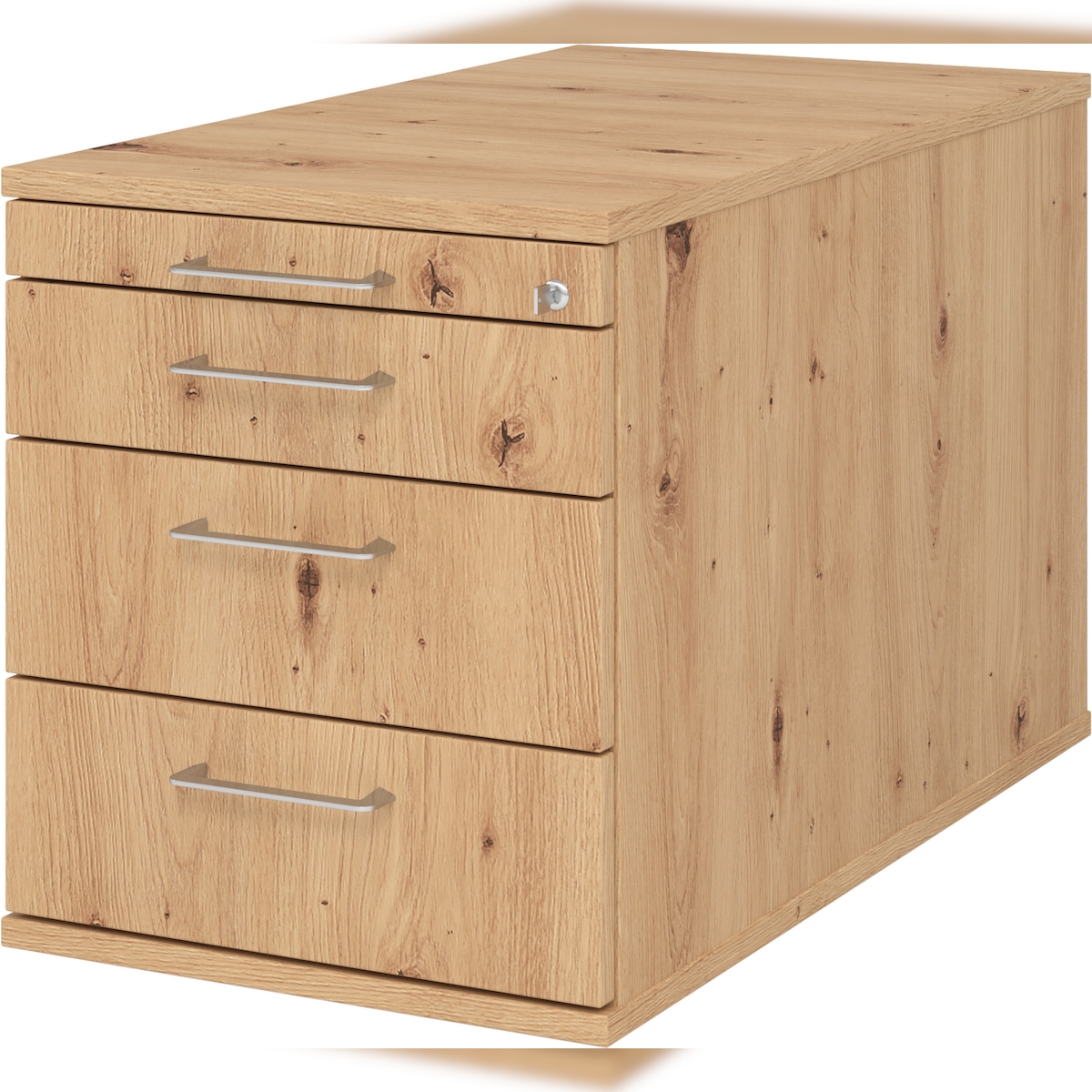 bümö smart Schubladenschrank, Büroschrank 80cm breit in Ahorn mit 4 Schüben & 1 Regalfach - Bürocontainer aus Holz, Container mit Metallgriffen &