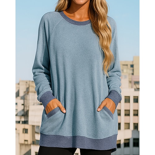Per donna Felpa pullover Top casual con tasche Manica Lunga Top Athleisure Autunno Tinta unita Di tendenza All'aperto Viaggio abbigliamento sportivo Abbigliamento sportivo Rosa Blu Verde
