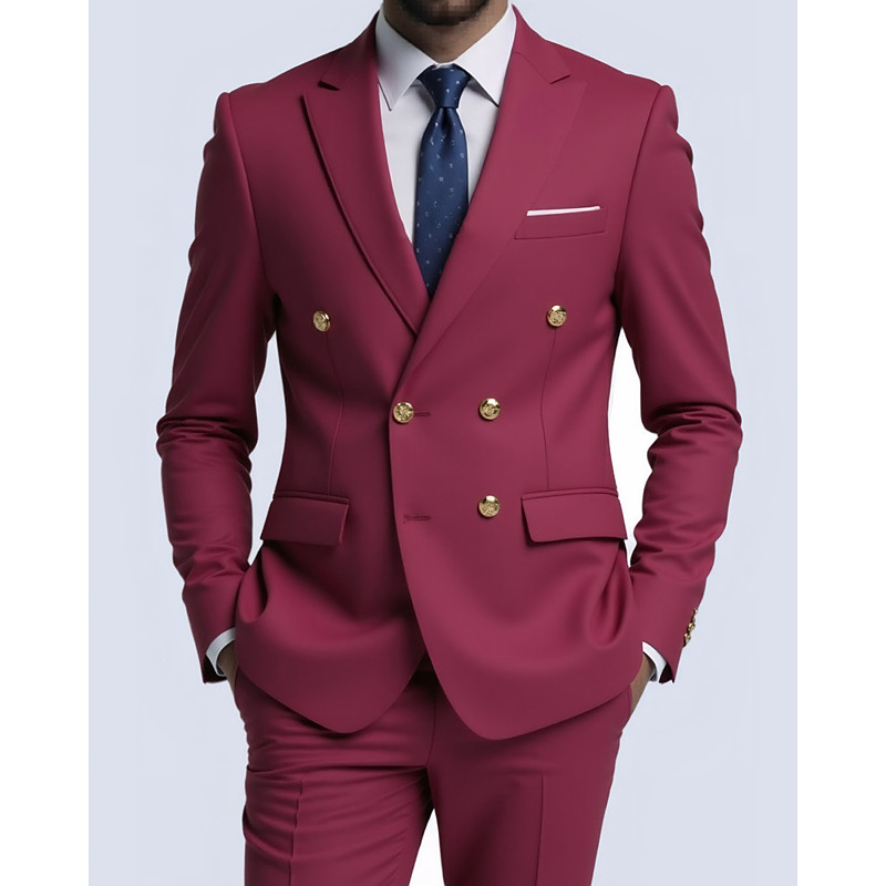 Men's Wedding Suits Peak Light Blue Black Casual Solid Colored Tailored Fit 2 Piece Double Breasted Six-buttons