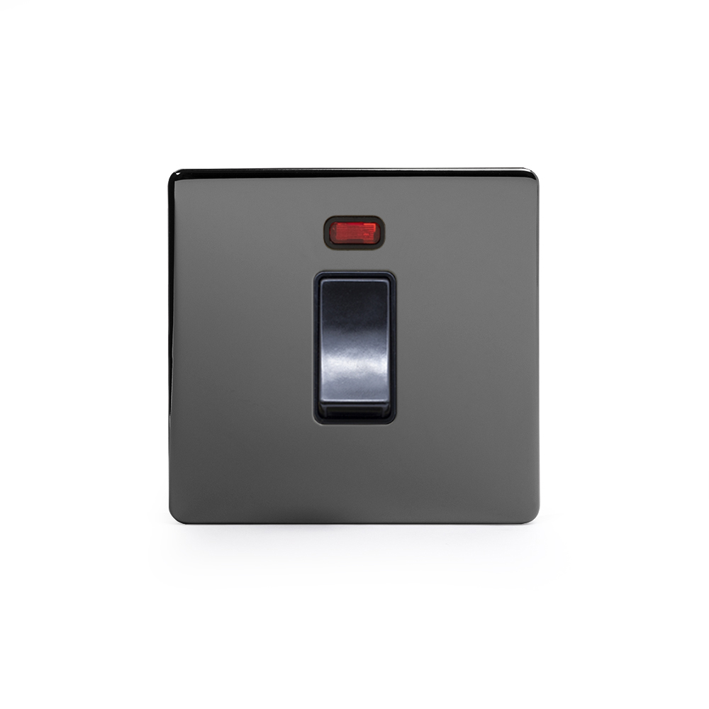 Soho Lighting Black Nickel 45A 1 Gang Double Pole Switch With Neon Single Plate Blk Ins Screwless