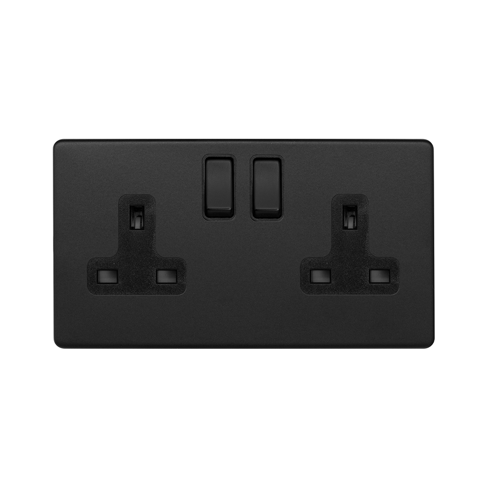 Soho Lighting Matt Black 13A 2 Gang Socket Double Pole Black Inserts