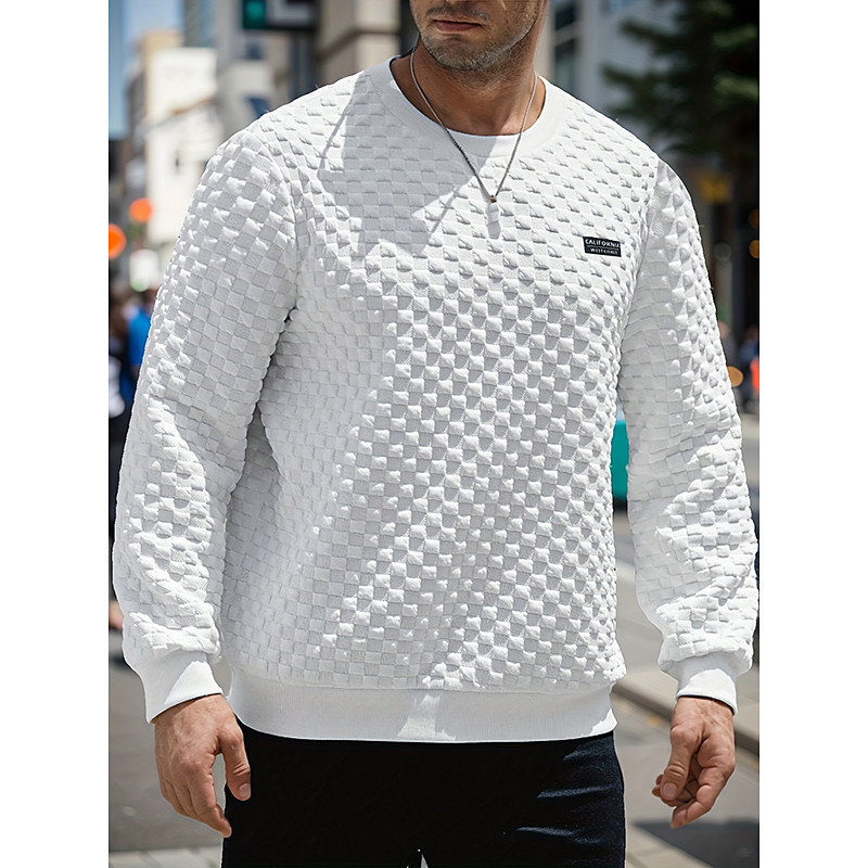 Men's Sweatshirt Waffle Sweatshirt Pullover Hoodie Sweatshirt Pullover Black White Crew Neck Plain Textured Sports Outdoor Casual Daily Streetwear Cool Sportswear Spring Fall Clothing Apparel
