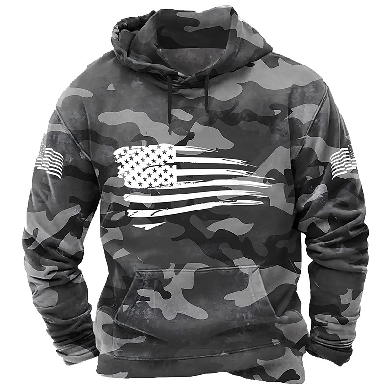 Men's American US Flag Deer Hoodie Sweatshirt Fashion Classic Long Sleeve Crew Neck Outdoor Hunting Black Red Purple Drawstring Fall Winter Designer S M L XL XXL XXXL