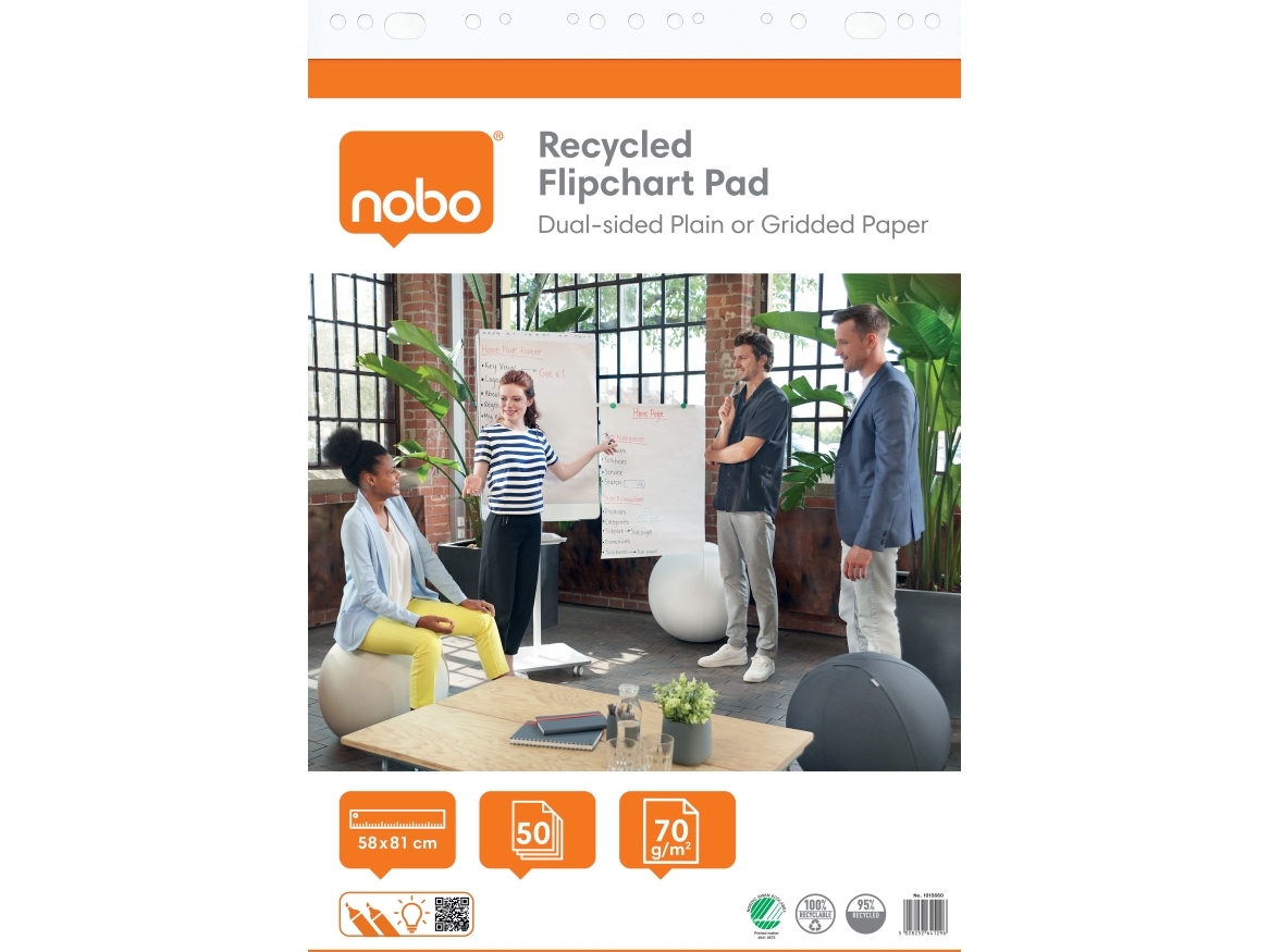 Nobo Recycled flipoverblok 58x81cm, dobbeltsidet blankt eller kvadreret papir, 50 ark, 70g, 1 stk., fladt pakket. - (2 stk.)