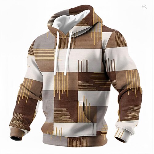 Herren-Hoodie mit abstraktem geometrischem Blockmuster, erdfarbenes Braun, modernes, lässiges Langarm-Kapuzenshirt mit Tasche, Größen S, M, L, XL, XXL, XXXL