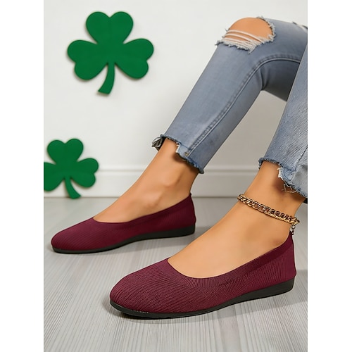 Grüne Flyknit-Ballerinas für Damen – bequeme, dehnbare Slipper, ideal für St. Patrick's Day, Erledigungen, Brunch und Büroalltag.
