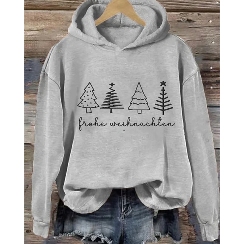 Christmas Women's Blouse Christmas Tree Casual Long Sleeve Hooded Regular Tops Daily Holiday Going out Print Black White Pink Red Green Fall Winter