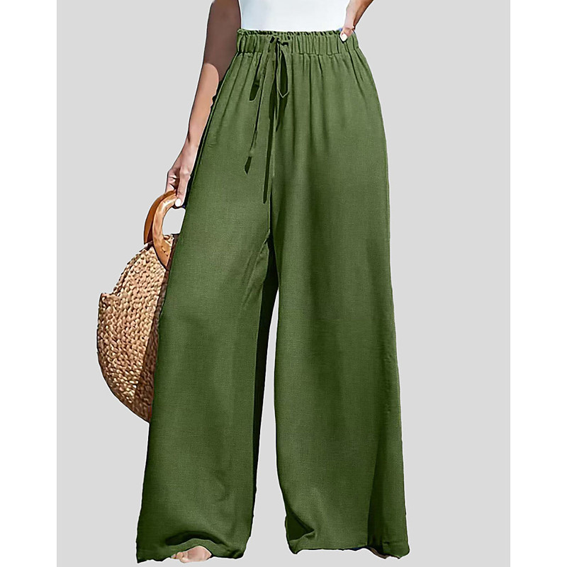 Women's Cotton Linen Pants Wide Leg Chinos Vacation Streetwear Casual Full Length Medium Waist Plain Drawstring Pocket Breathable Micro-elastic Daily Outdoor Street Grey Black Army Green Dark navy