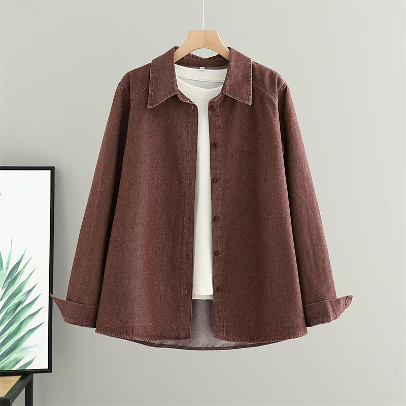 Women's Shirt Solid Color Daily Stylish Casual Long Sleeve Shirt Collar Regular Tops Work Daily Going out Buttons Denim Olive Green Pink Light Brown Dark Blue Spring Fall