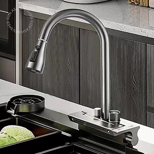 Wasserfall-Küchenarmatur, herausziehbarer Spültischmischer, Wasserhähne, LCD-Digitalanzeige, mit G1/2-Kalt- und Warmwasserschlauch