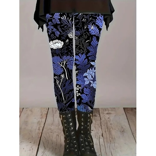Per donna Pantaloni Eleganti Leggings Leggings comodi Streetwear Casual Lunghezza intera Naturale Fiore Stampato Comodo All'aperto Ferie Uscire Vinaccia Nero Blu Azzurro cielo Autunno Vestibilit