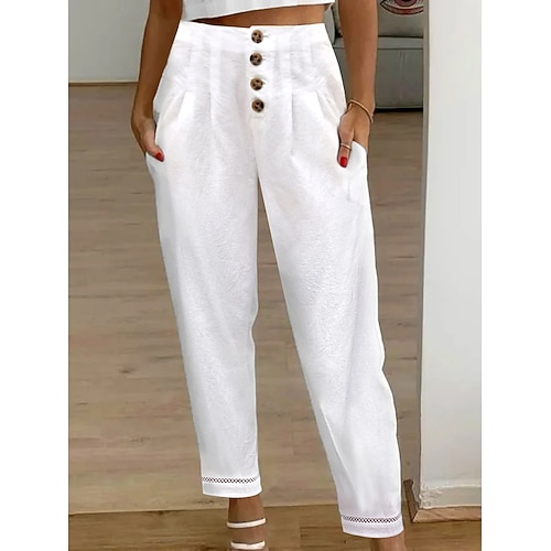 Per donna Gamba larga Chinos Vacanza Vintage Moda Lunghezza intera Vita Alta Semplice Arricciato sollevamento glutei Fibbia Comodo Morbido Confortevole Inelastico All'aperto Streetwear Blu cielo