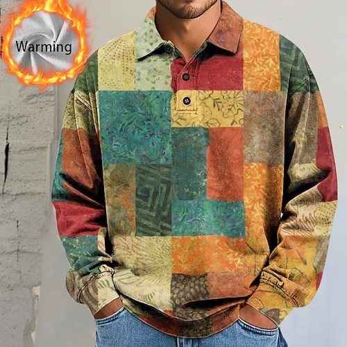 Per uomo Astratto Geometrico Polo Camicie termiche Manica Lunga Magliette polo Bavero Casual Athleisure Ferie Abbigliamento quotidiano Stampa 3D Autunno Inverno Blu Giallo Azzurro cielo