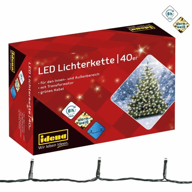 Idena Lichterkette 40 LED warmweiß 8h Timer 11,90m mit Netzteil, innen & außen